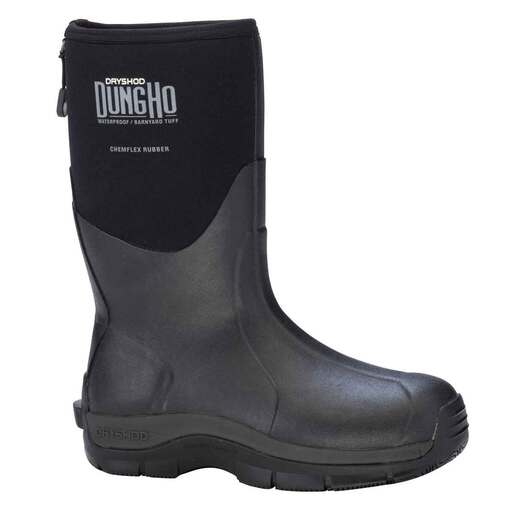Dryshod Men's Dungho Barnyard Tough Mid Waterproof Pull On Boots - Built to withstand the nastiest stuff you can throw at them. Slop with confidence! DS-2 molded outsole Bi-directional tread for slip resistance on solid surfaces CHEMFLEX chemical...