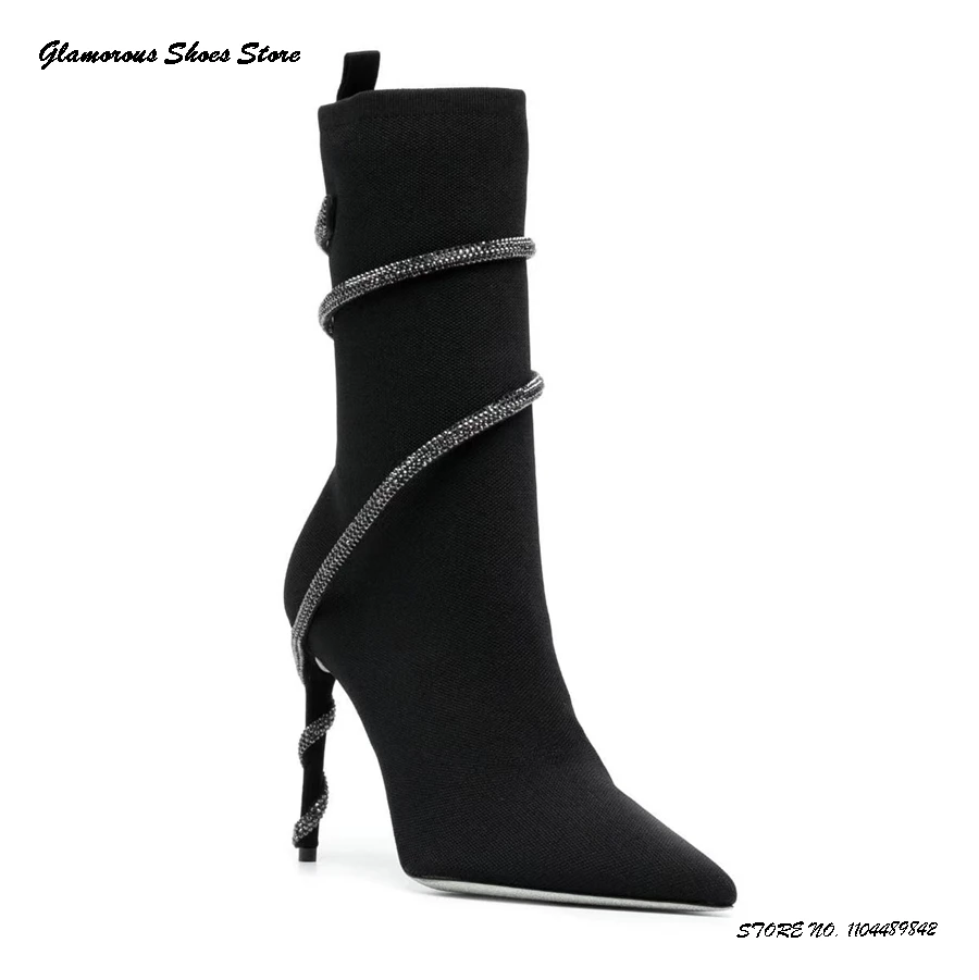 Crystal Embellished Stiletto Booties Elegant Pointed Toe Thin Heels Party Dress Shoes Spring Autumn Fashion Pull On Ankle Boots  Read more