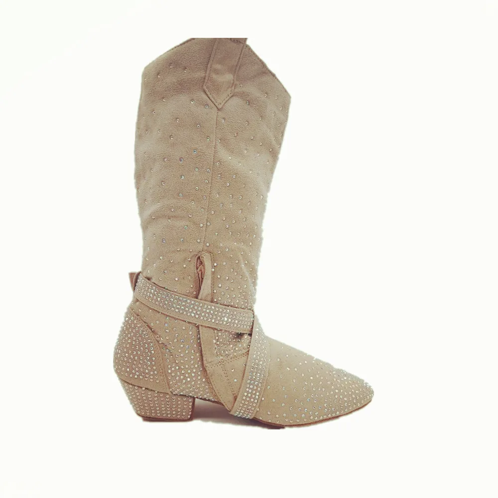 Practice OEM Latin Dance Boots Rhinestone Brown Soft Latin Salsa Ballroom Party Dancing Shoes Black Sport Party Dance Boot Shoes