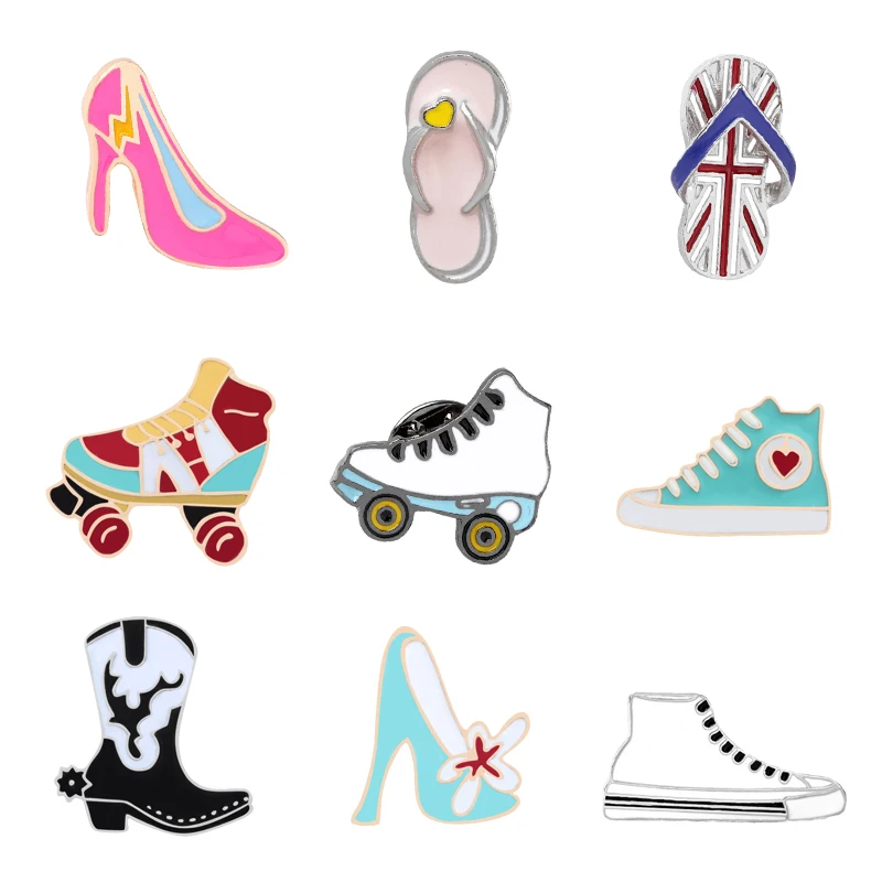 Enamel Canvas Shoes Pins Collection Boots High Heels Roller Skates Slippers Brooches Clothes Bag Button Pin Badges Women Jewelry