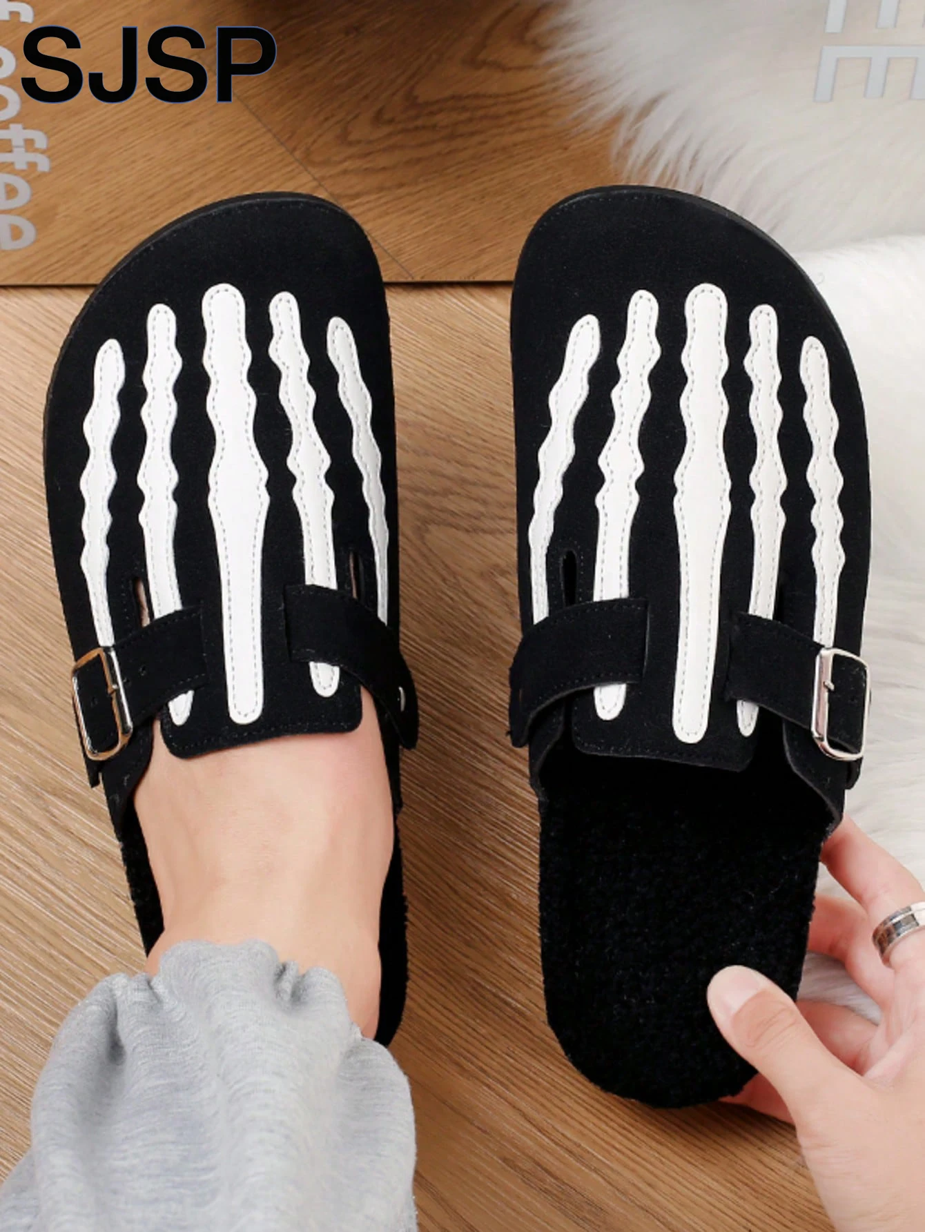 Men's Slip-On Slippers, Skull Print Design, Casual Backless Mule Sandals, Suitable for Indoor/Outdoor Wear, Minimalist Street Style, Daily Walking and Casual Comfortable Slippers