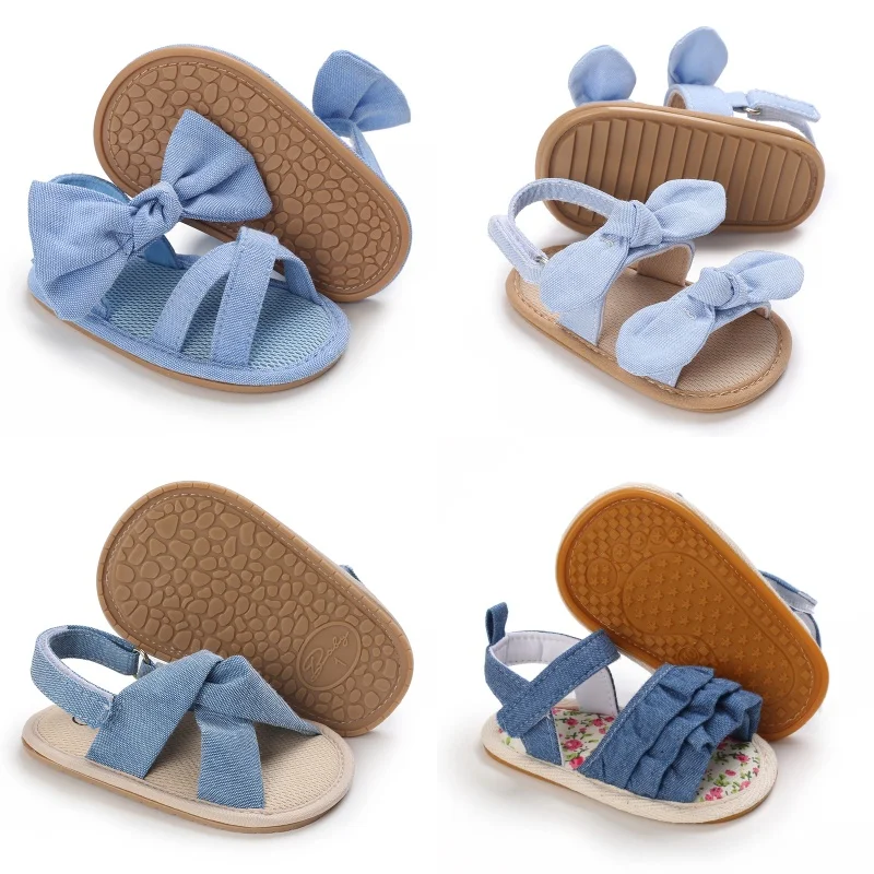 Sweet 0-18M Baby Cute Open toed Pre school Summer Sandals Blue Princess Casual Soft Rubber Bottom Anti slip Single Shoe Women's