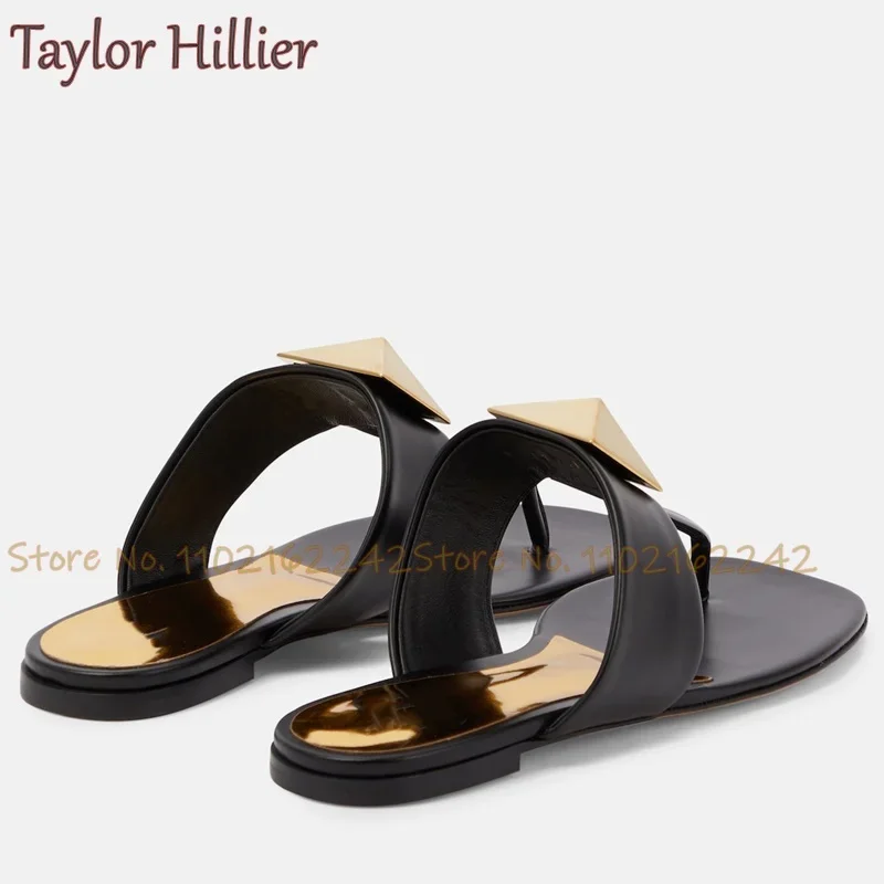 Gold Rivet Thong Flat Shoes Round Toe Shallow Mouth Non-Slip Sandals Fashion Summer Luxury Designer Thong Sandals Slippers Women