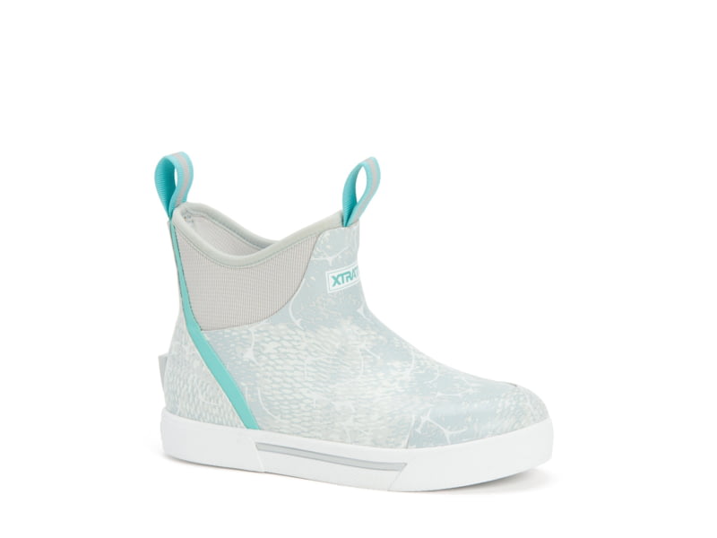 Xtratuf Wheelhouse Shoes - Women's Blue Coho Print 8 XWW-2CH-BLU-080. Standing for 12+ hours a day on the sea can cause feet to swell and the wider fit of this boot is built for that. The upper is reinforced in high wear areas such as the toe and...  Read more