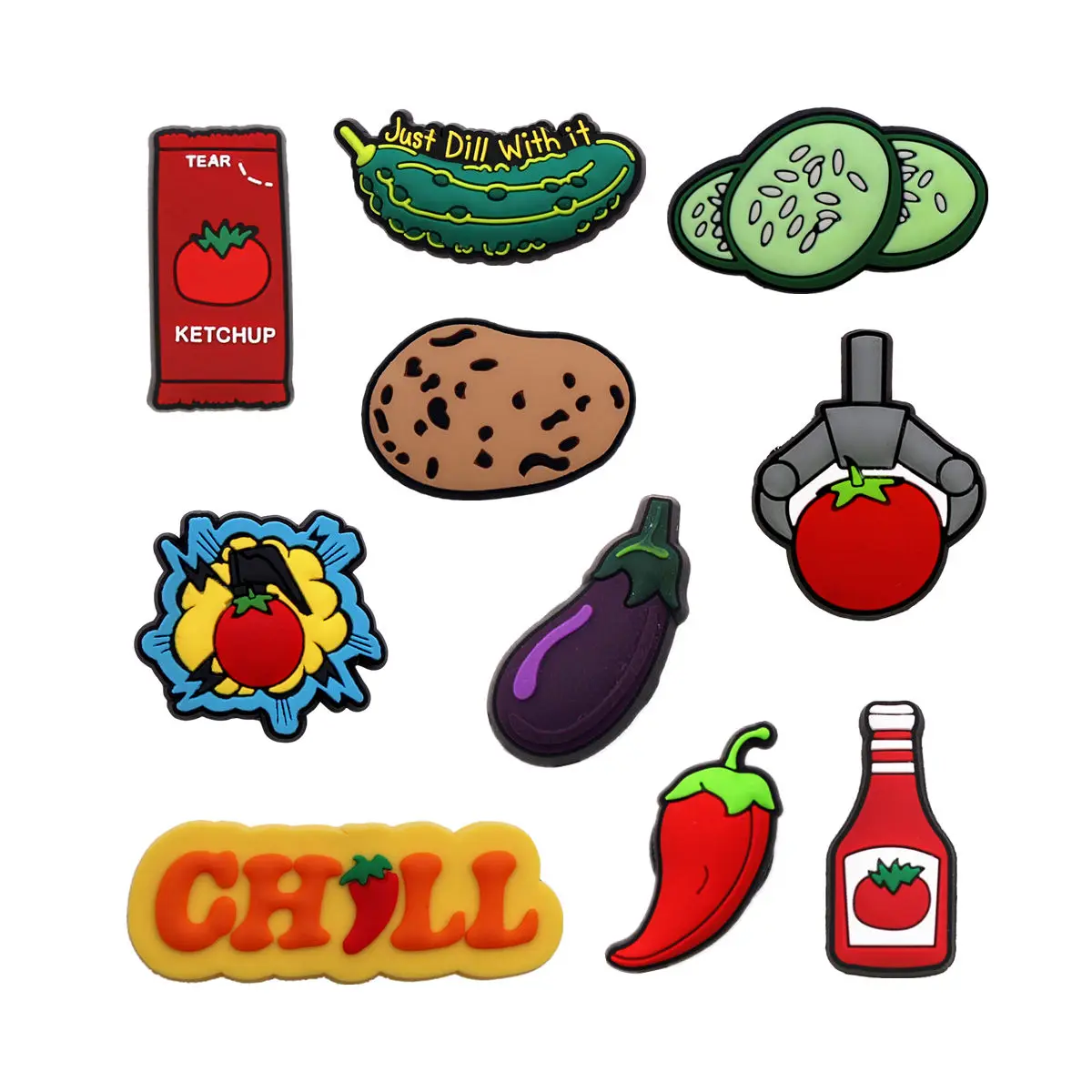 1 Pcs Original Red Pepper Shoe Charms Accessories Cucumber Potato Eggplant Tomato PVC Sandal Upper Buckle Badge Clog Decorations  Read more