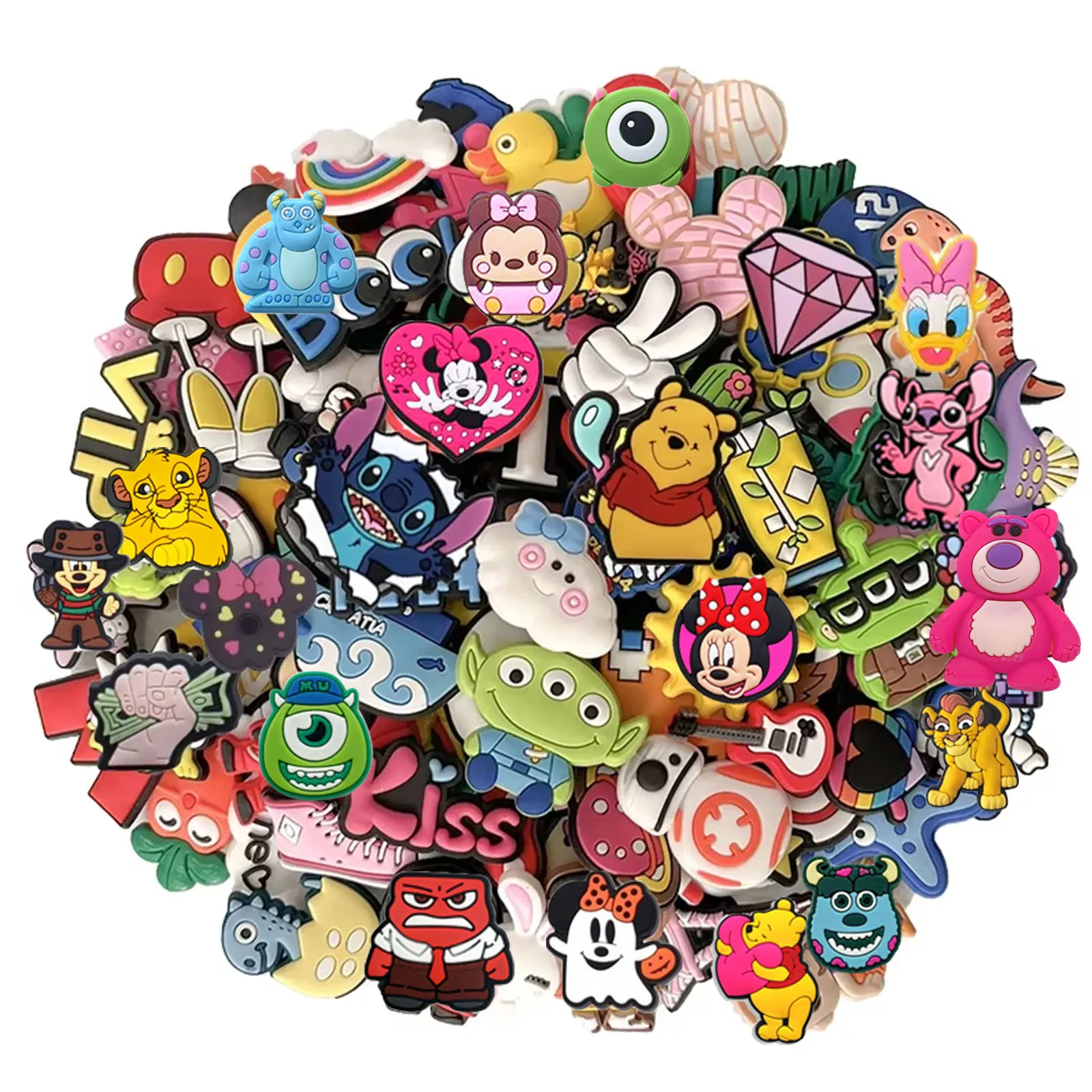 Random 10-100Pcs MINISO Disney Series Shoe Charms For Key Chain Sandals Beach Bags, DIY Shoe Decorations Accessories Shoes Pins