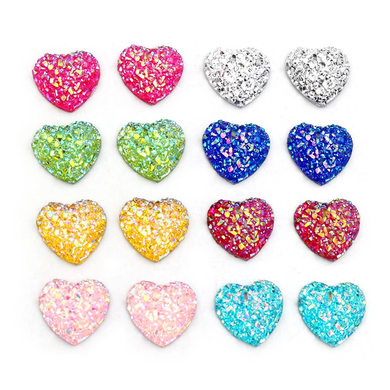 Fashion 40pcs 12mm Flat Back Heart Resin Cabochons Multi Colors Druzy Natural Stone Convex DIY Jewelry Making Accessories  Read more