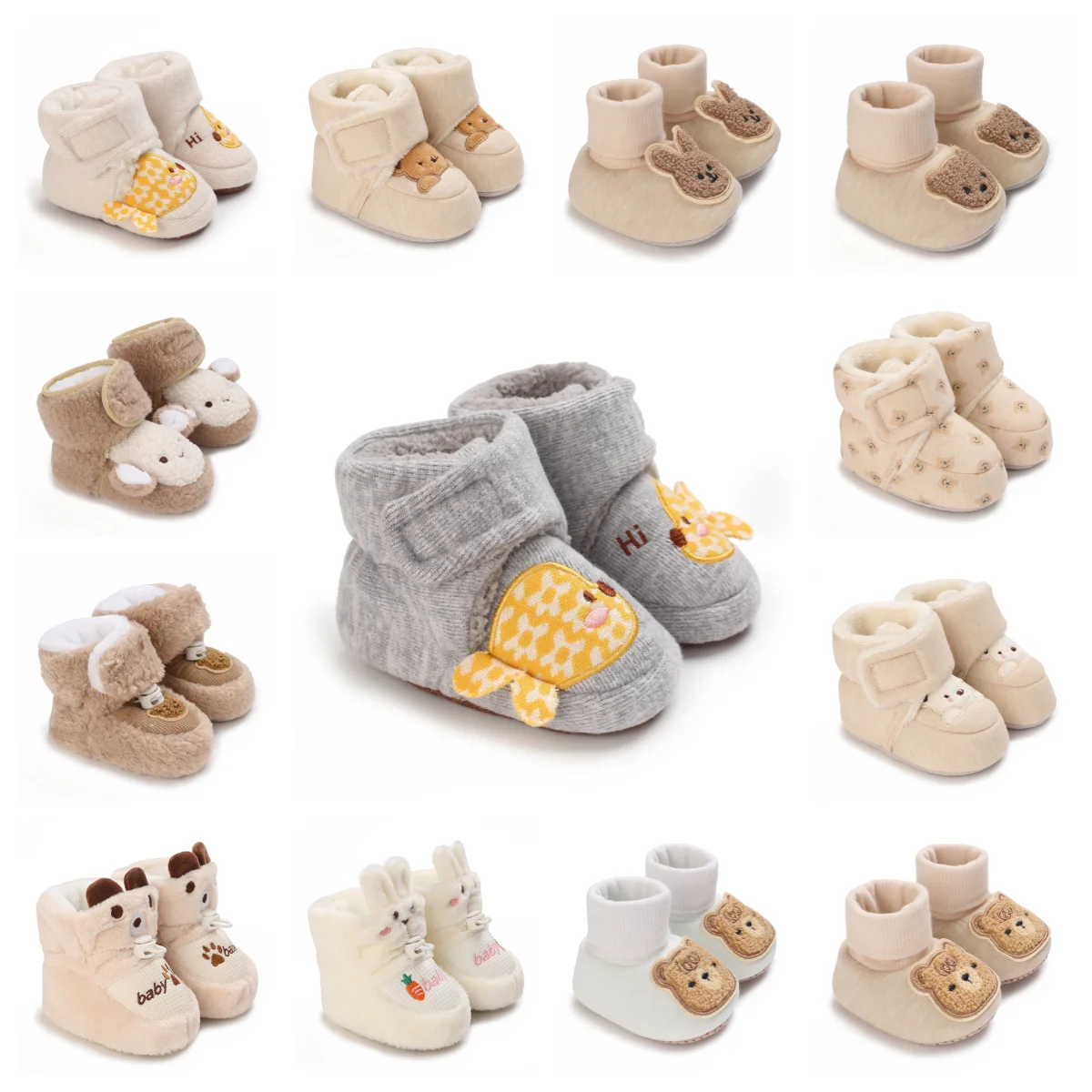 Cute Winter Newborn Cotton Shoes Outdoor Anti Slip And Warm Baby Walking Shoes Children's Plush Snow Boots