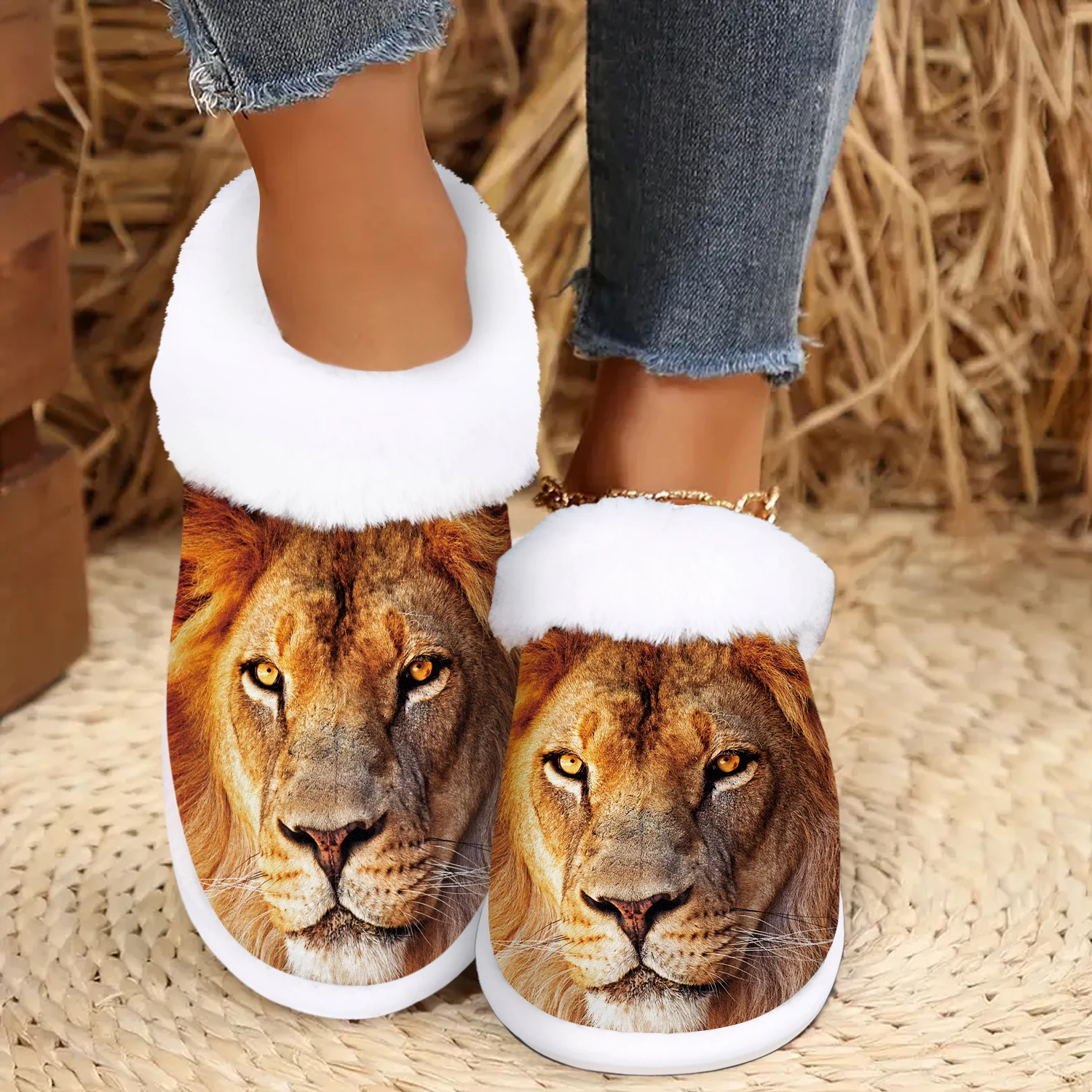 Non-Slip Lion Slippers House Shoes - Slip-On Indoor/Outdoor Footwear with Lion Faces, Soft Non-Slip Sole - for Living Room