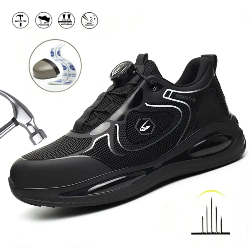 Men Rotating Button Safety Shoes Steel Toe Work Sneakers Indestructible Shoes Puncture-Proof Work Boots Air Cushion Safety Shoes