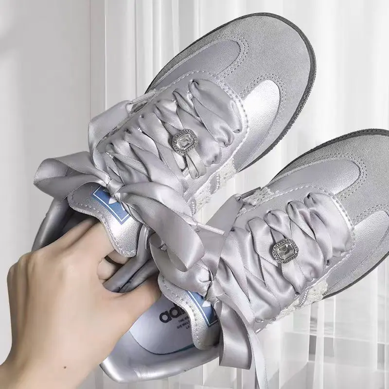 2 cm Widened Silk Satin Shoelaces For German Training Shoes Silver Gray DIY Silk Ribbon Laces Sneakers Casual Sport Sholes Laces
