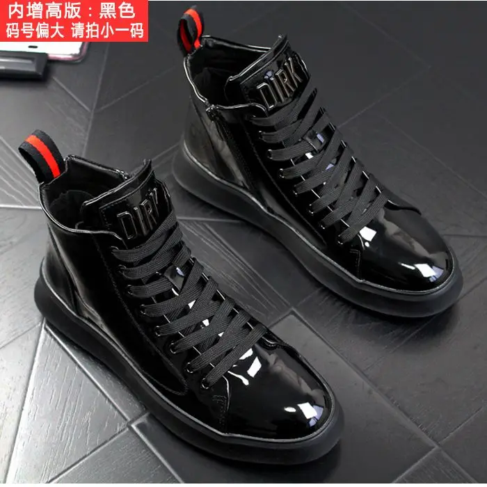Men's Four Seasons Shiny Patent Leather Board Boys High-Top Casual Shoes 2025 New Fluorescent Green Gold Silver White  Read more