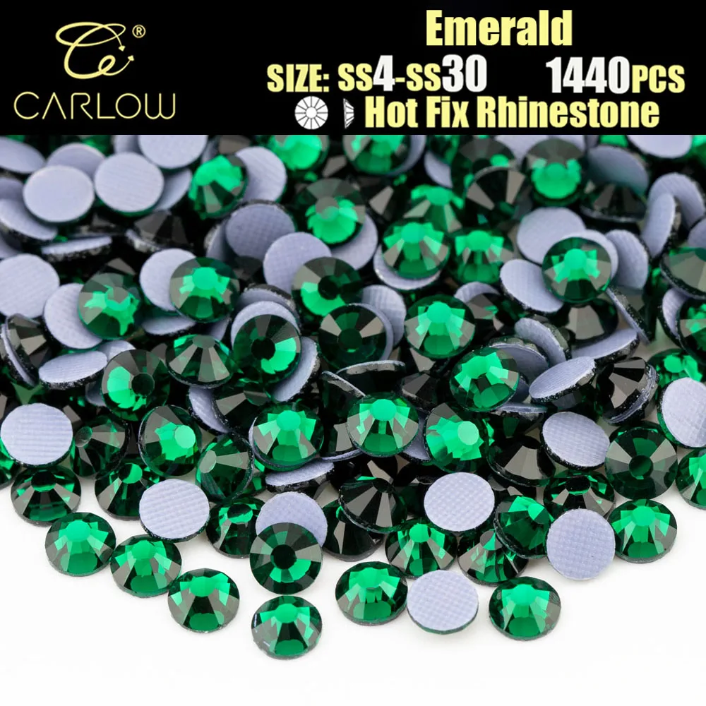 CARLOW Top Quality Emerald Hot Fix Rhinestone Flatback Glitter Crystals Iron On Stones for Garment Clothing DIY hotfix-022