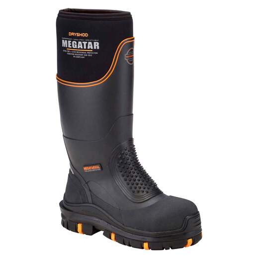 Dryshod Men's Megatar Steel Toe Pull On Boots - Safety matters! Provides the ultimate in steel-toe metatarsal and midsole protection with all-day comfort! Extreme-Protection Steel-Toe Work Boot. Patent-pending external Flex-Tipped Deflective...