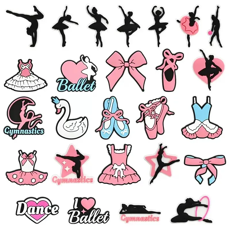 1-26PCS Ballet Dance Gymnastics Swan PVC Shoe Charms Buckle Clog Fit Wristbands Shoe Decoration Accessories Holiday Present