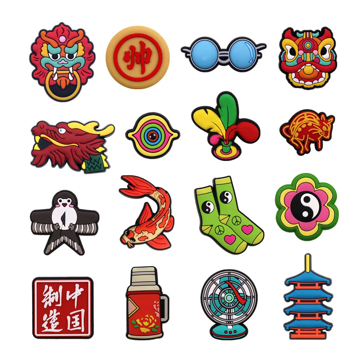 1 Pcs Original Cool Shoe Charms Accessories Lion Dance Carp Dragon Tower PVC Sandals Upper Buckle Badge Clog Pins Decorations