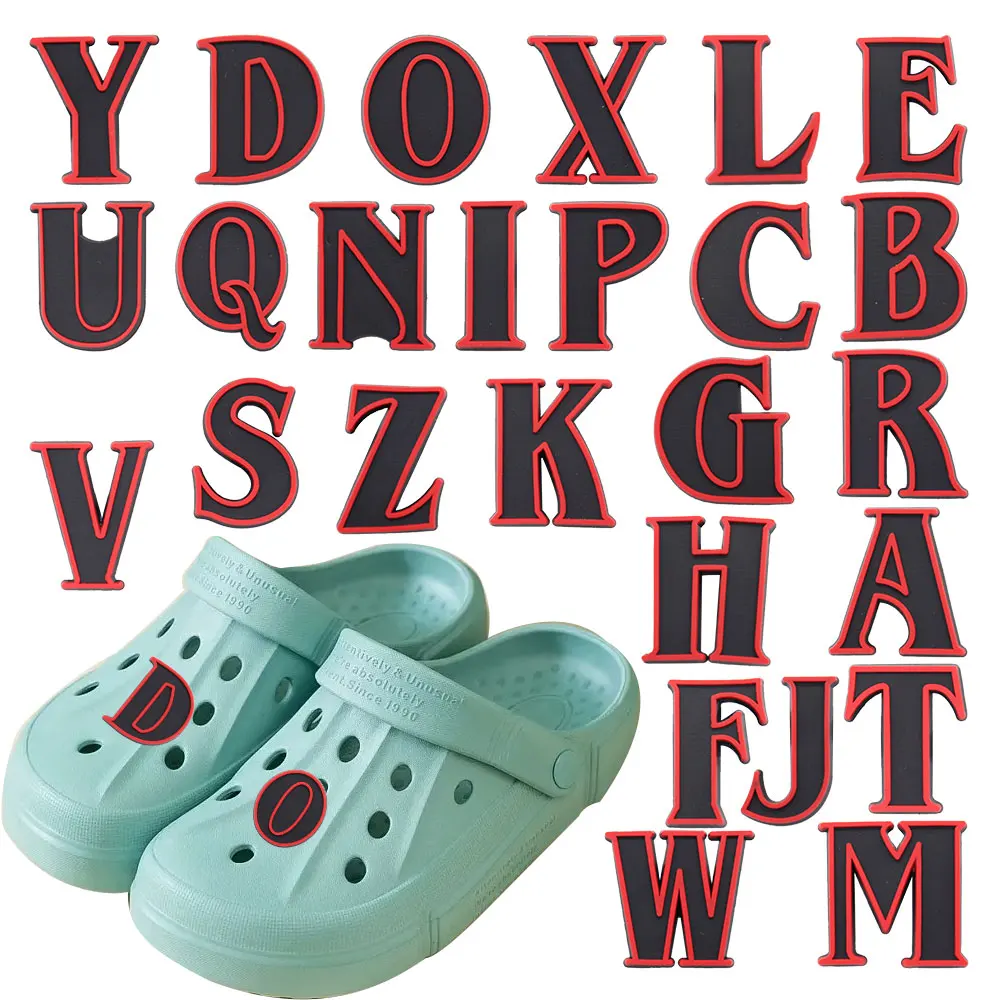 1-26PCS Black Red English Letter Alphabet PVC Buckle Clog Hole Shoes Decoration for Bracelets Accessories For Clogs Pins