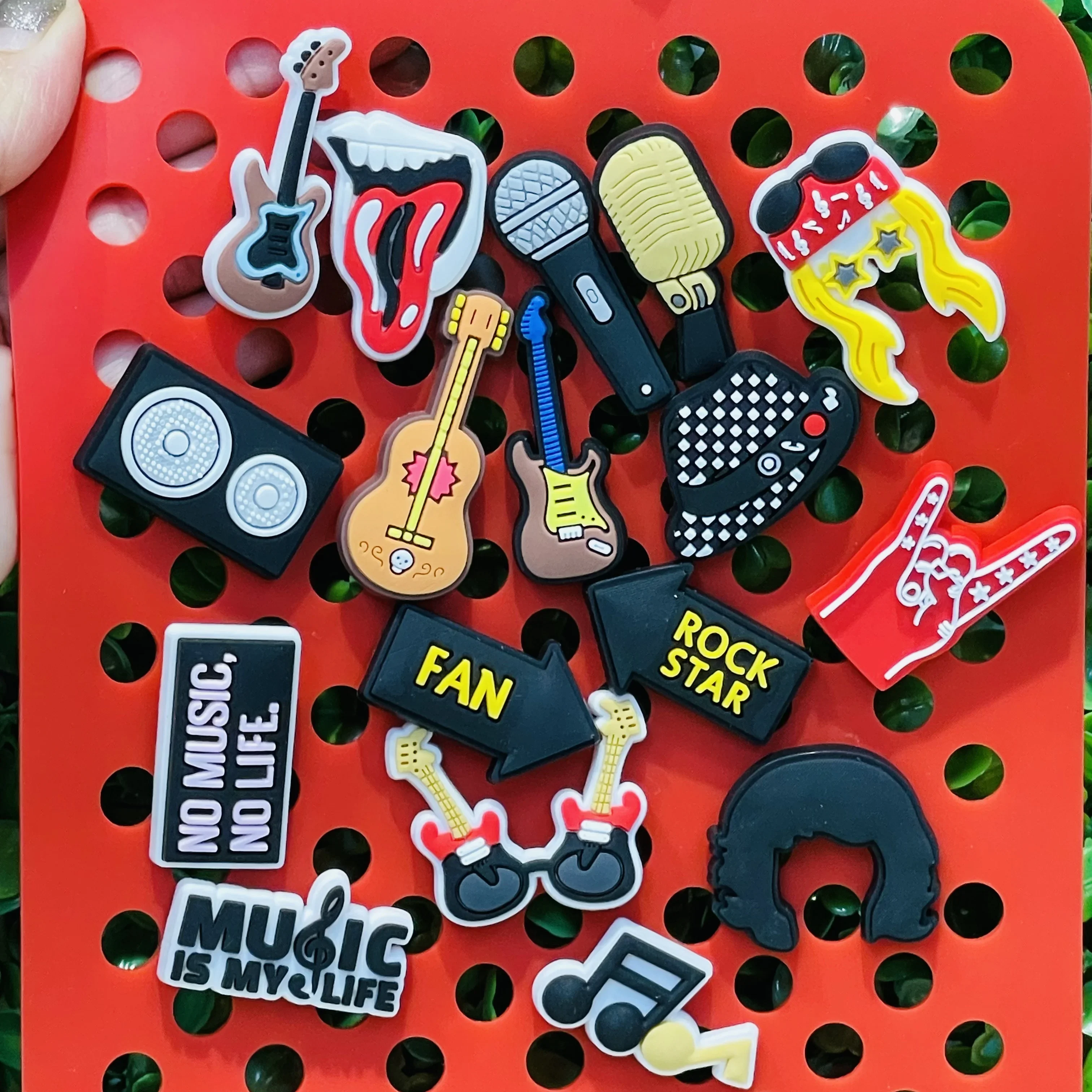 1-17Pcs Music Is My Life Slipper PVC Shoes Charms Guitar Microphone Buckle Clog Decorations DIY Backpack Wristbands Party Gift