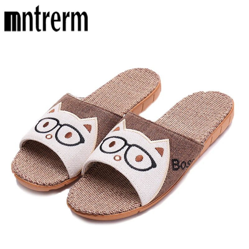 New Summer Men Linen Flip Flops Animal Prints Sandals Flat Non-Slip Linen Slides Home Slipper Man Casual Flax Beach Shoes 2020