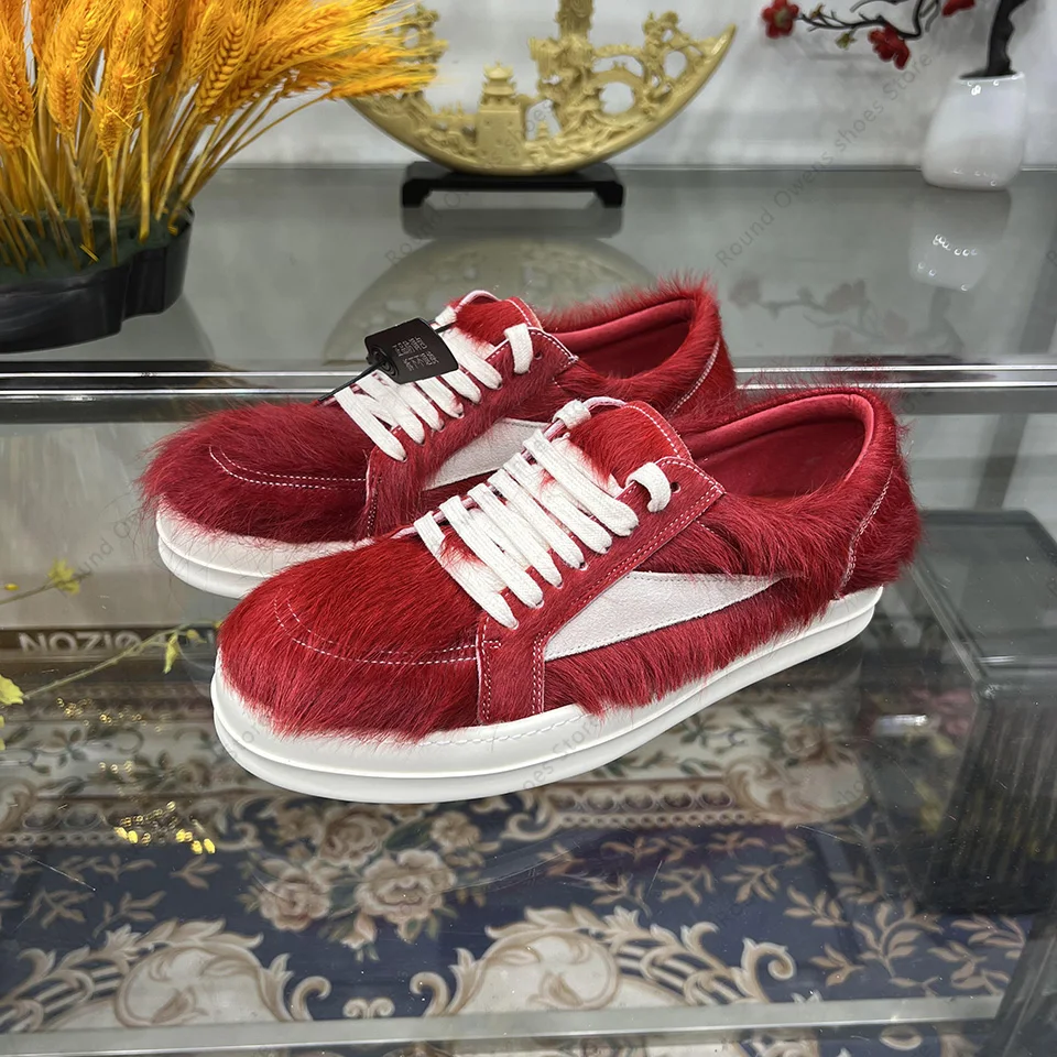 24ss New Horse Hair Low Top Quality Casual Shoes Dark Red Men Genuine Leather Thick Sole Lace Up Luxury Sports Ro Women Sneakers