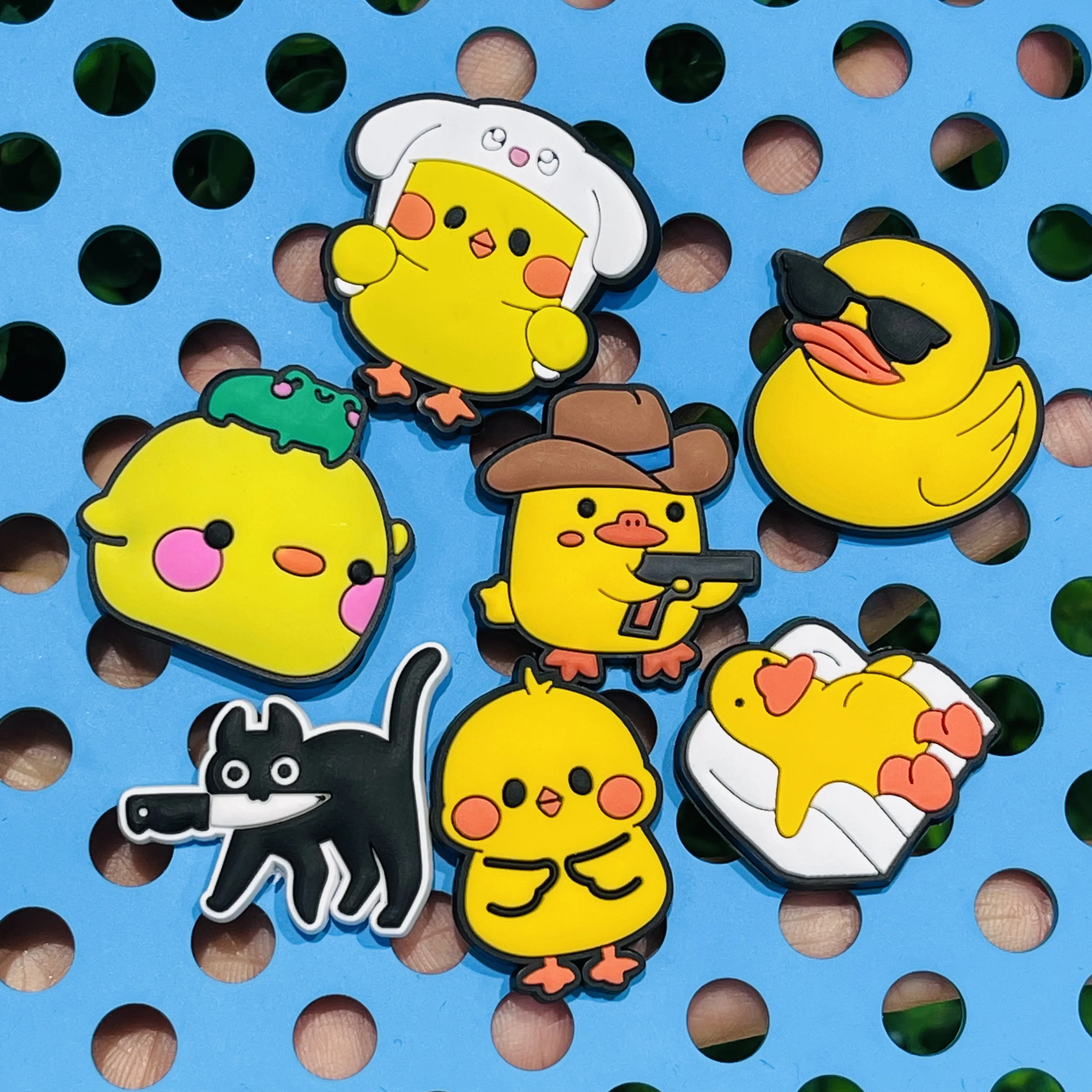7Pcs Cartoon Animal Chicken Duck Black Cat Knife Gun PVC Shoe Charms Clogs Pins Sandals Shoes Decoration Slipper Accessories
