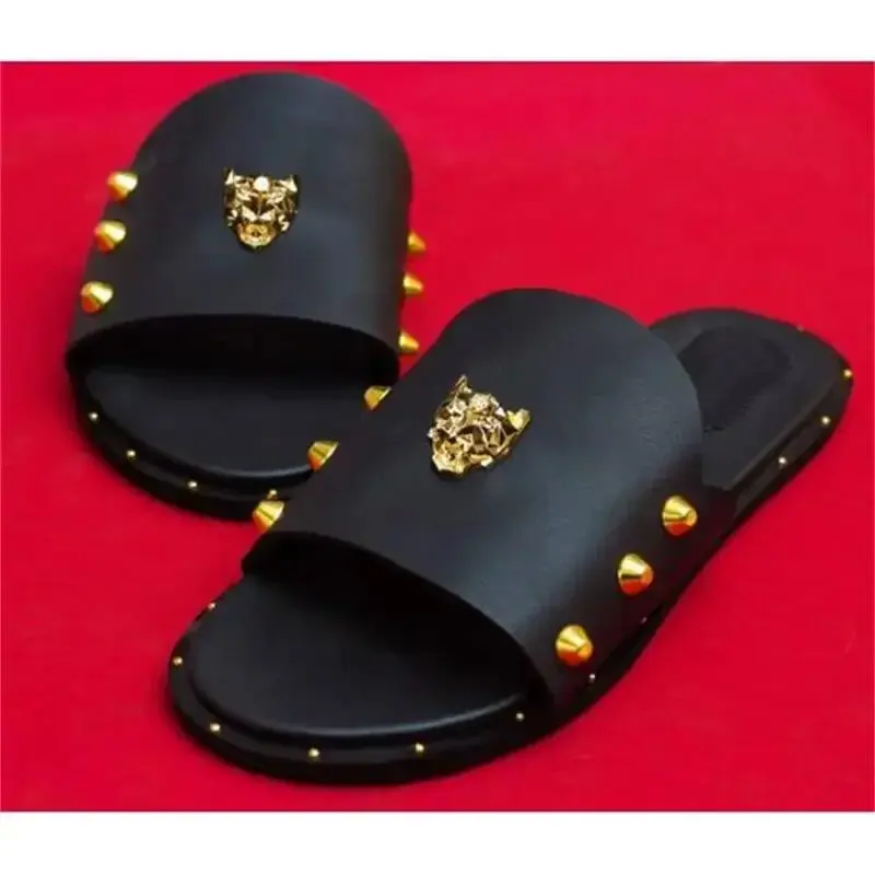Summer New Men Slippers PU Leather Outdoor Beach Shoes Slippers Fashionable and Personalized Cool Slippers 38-48 Men Slippers