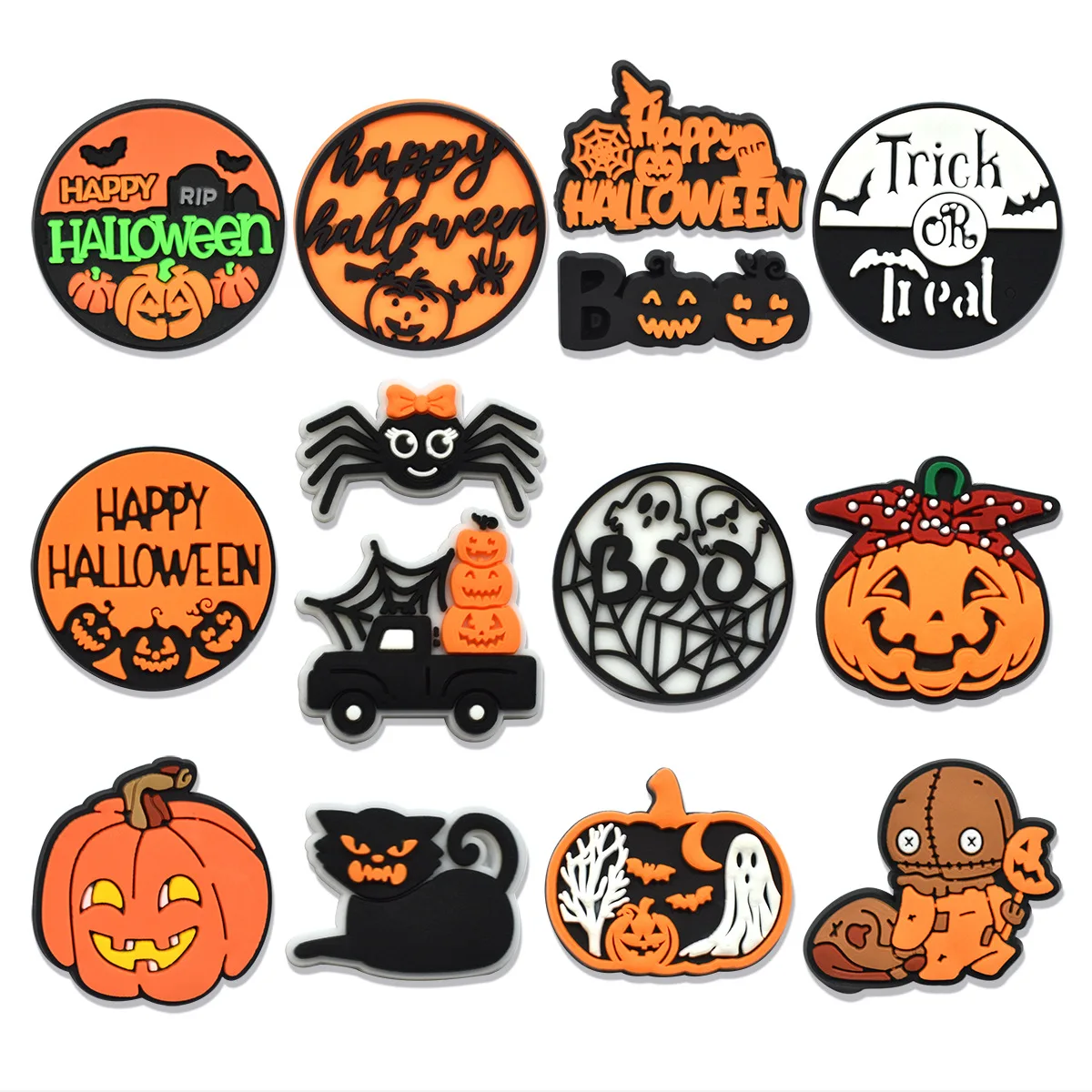 Halloween Pumpkin Series PVC Shoe Charms for Clogs Bubble Slide Sandal Shoe Accessories Decoration Pins Fit Halloween Gifts Kids
