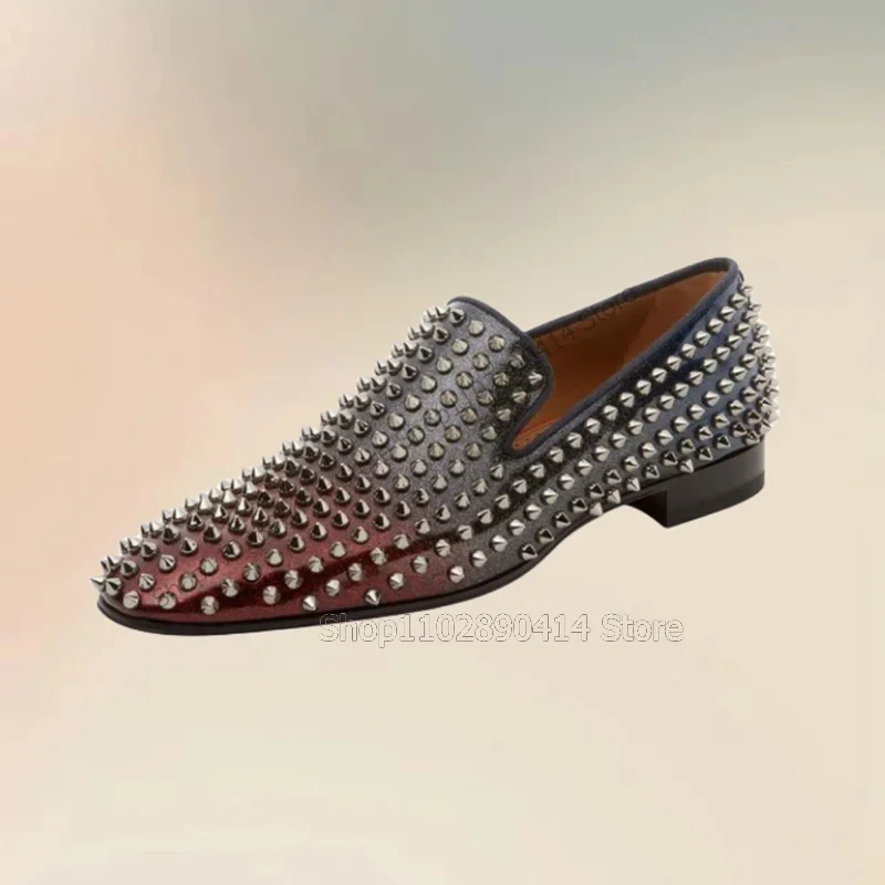 Black Red Gradient Color Rivets Decor Loafers Fashion Slip On Men Shoes Luxurious Handmade Party Banquet Wedding Men Dress Shoes