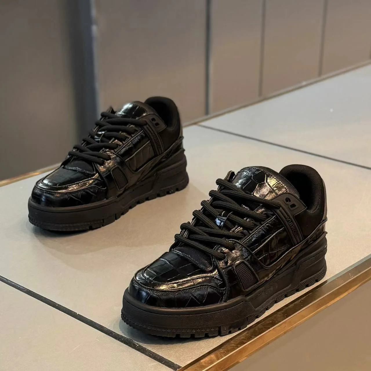 Trendy brand ruffian handsome high-end thick-soled skateboard shoes autumn new versatile crocodile pattern casual shoes