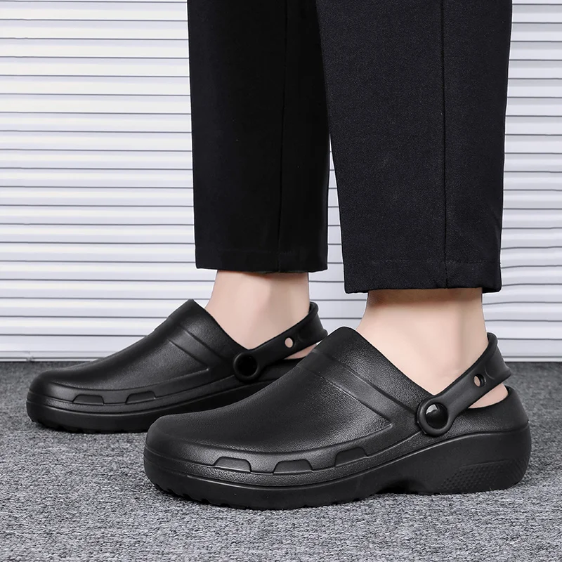 Men Slippers WaterProof Anti Skid Chef Shoe Breathable Slip on Casual Home Slippers Lightweight Beach Sandals Male Garden Clogs