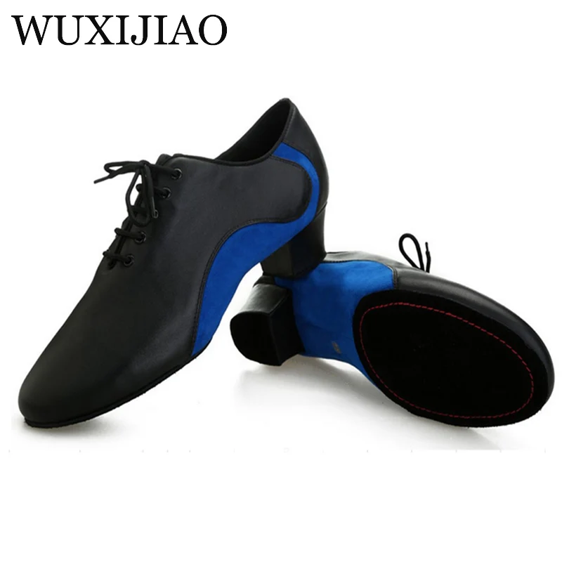 WUXIJIAO Men's Latin dance shoes Genuine leather Ballroom dancing shoes Low heel 2.2cm big size Party Square dance shoes