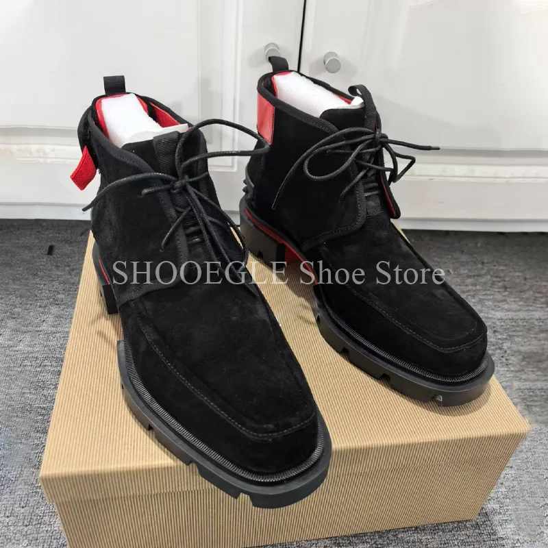 Black Suede Red Splice Boots Rivet Men’s Business Boots Small Square Head Classic Shoes For Men Fashion 2025 Ankle Boots