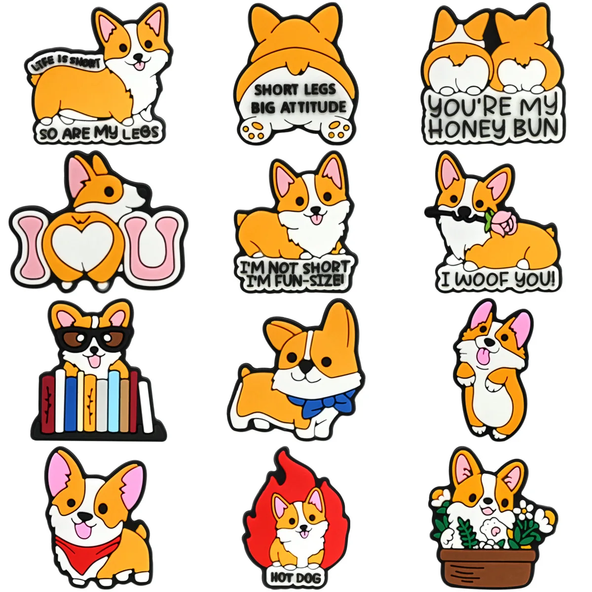 1-12pcs Corgi Lovely Dog Animal PVC Shoe Charms Accessories DIY Sandals Shoe Buckles Pins Movie Series Shoe Decor Friends Gifts