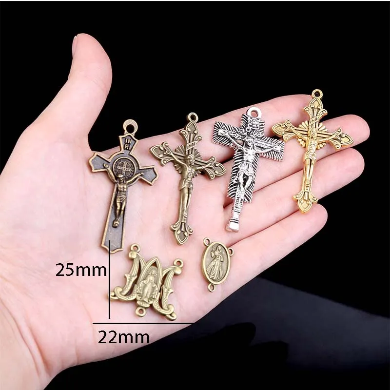 Catholic Rosary Vintage Bronze Connector Necklace Bracelet Connector, Many Jesus Christ Statue Necklace Bracelet Triangle Medal,