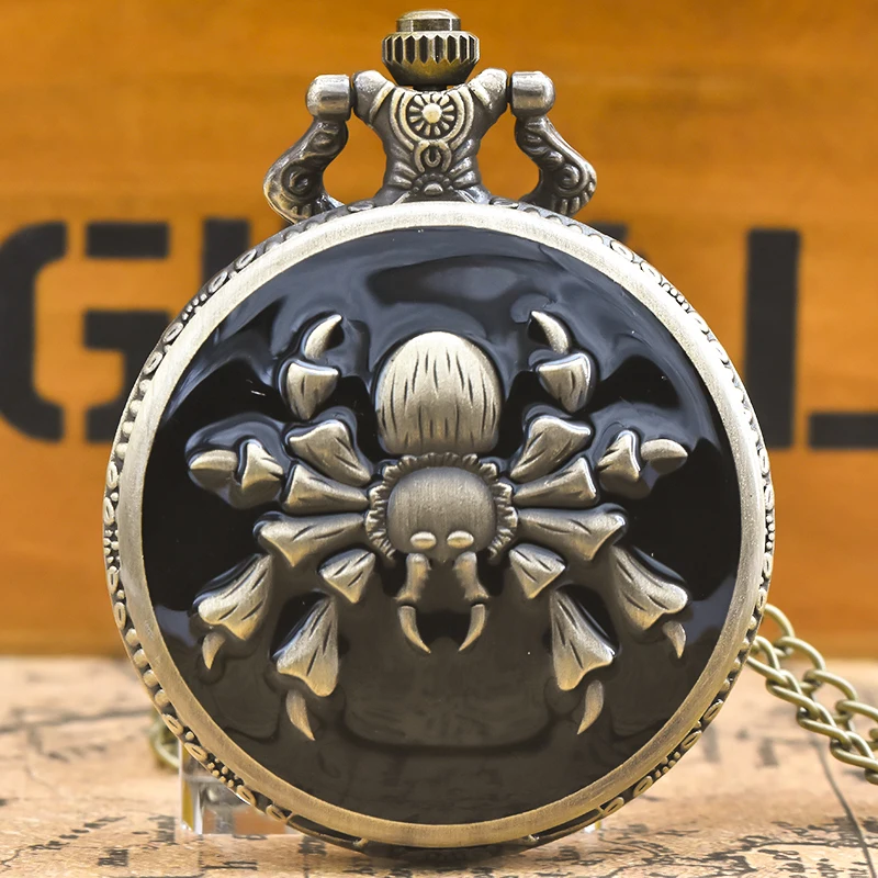 Steampunk Vintage Bronze Animal Spider Quartz Pocket Watch Necklace Pendant Clock Chain Men Women Chain Gift