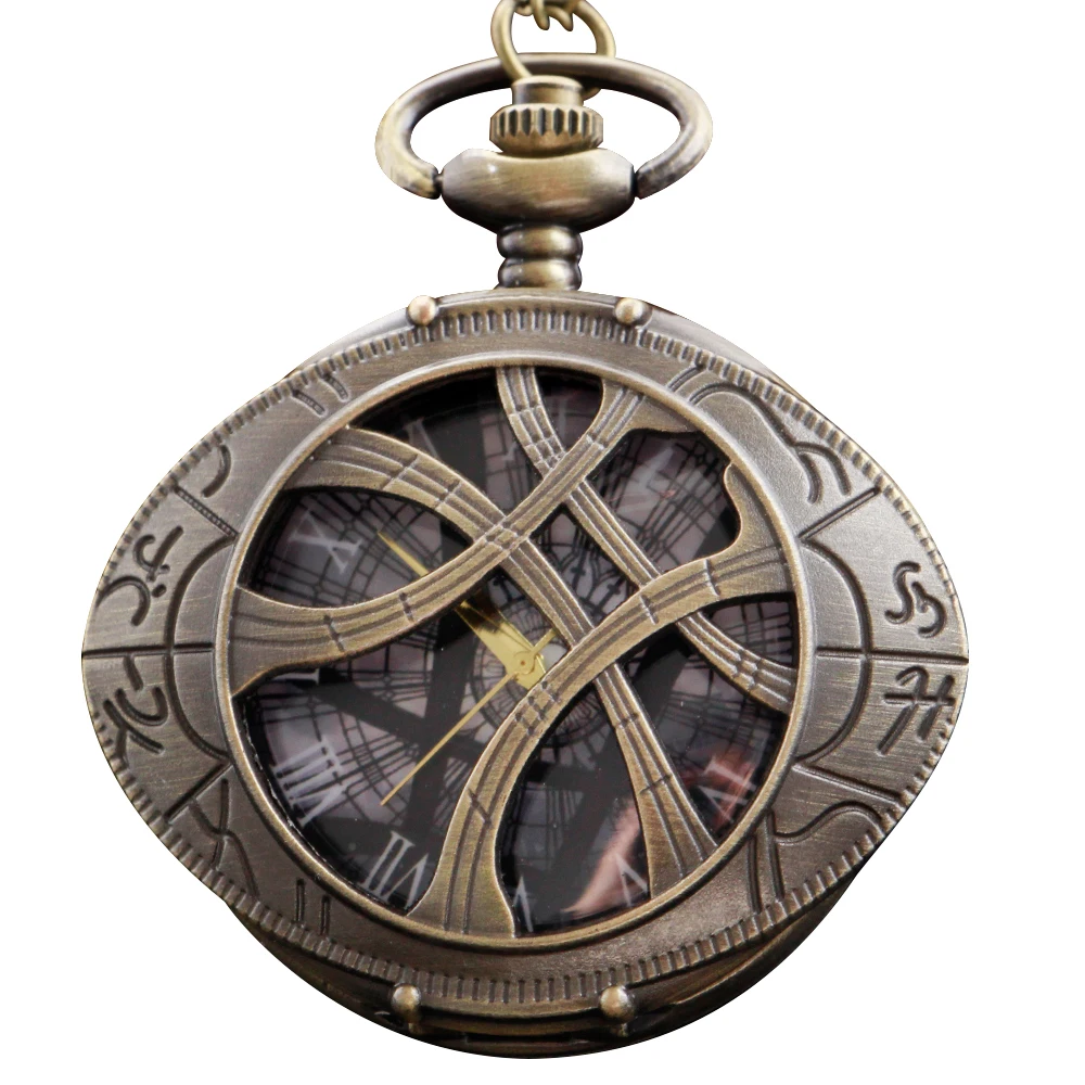 Bronze Strange Eyes Gemstone Pendant for Men and Women Quartz Pocket Watch Retro Fashion Necklace Accessories Best Student Gift