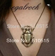 Gothic Beetle Scarab Necklace Steampunk Bronze Color Pendant Animal Insect Goth Jewelry