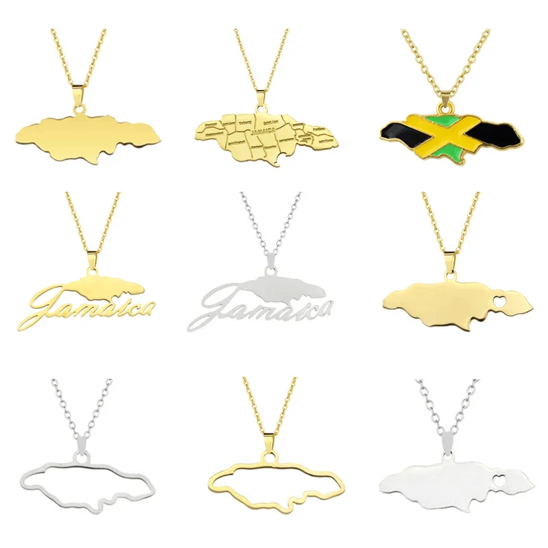 Stainless Steel Jamaica Map Pendant Necklaces Kinds of Style Gold Color Jamaican Women Country Map Jewelry Gift  Read more