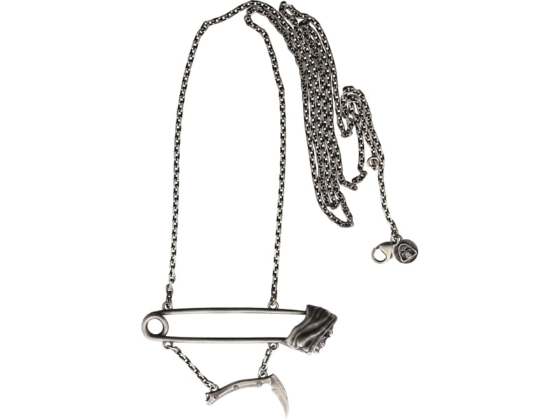 Bastinelli Creations Silver Necklace Short. Silver construction. Reaper/Safety pin design. 18" chain. Hardside carrying case. Specifications for Bastinelli Creations Silver Necklace Short: Manufacturer: Bastinelli Creations Weight: 0.46 lb Package...  Read more