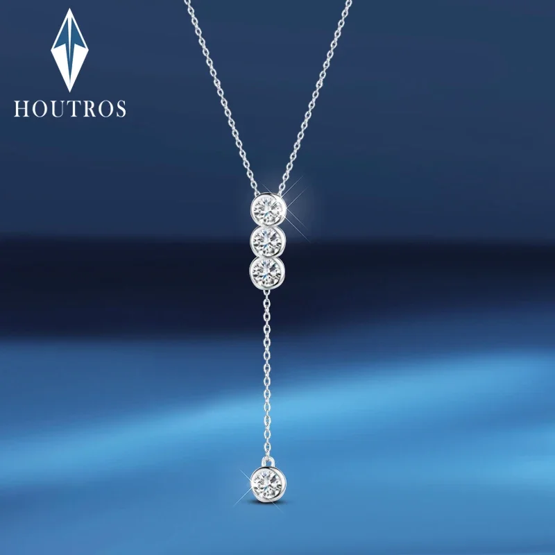Houtros 3mm/5mm Full Moissanite Necklace for Girls Classic Bubble Clavicular Chain 925 Sterling Silver Party Fine Jewelry Gift  Read more