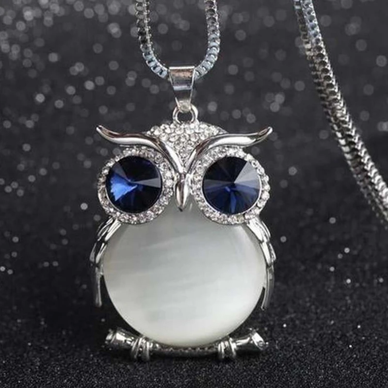 Fashion Cute Owl Pendant Necklace for Women Long Sweater Chain Rhinestone Necklaces Clothing Accessories Personality Jewelry