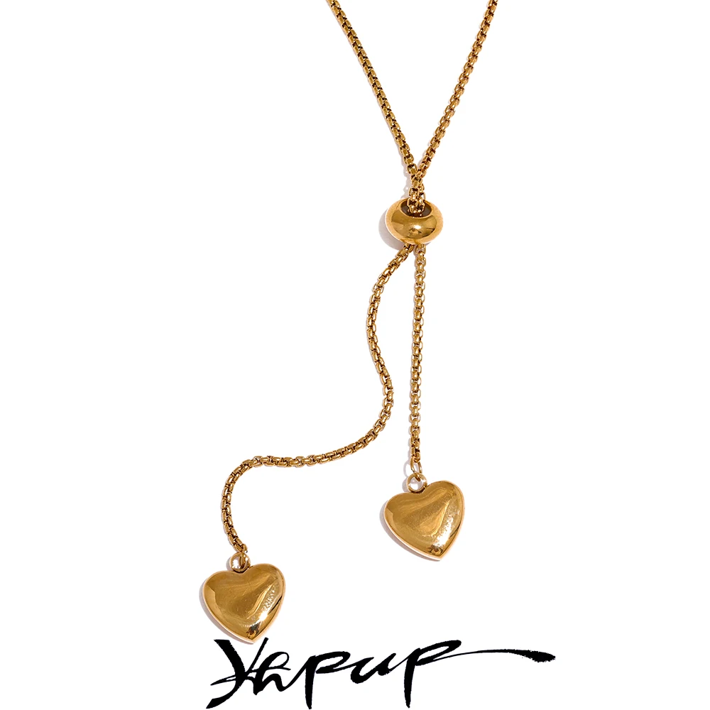 Yhpup Heart Long Pendant Stainless Steel Gold Color Pull-out Type Necklace Rust Proof Trendy Korean Jewelry Bijoux Femme