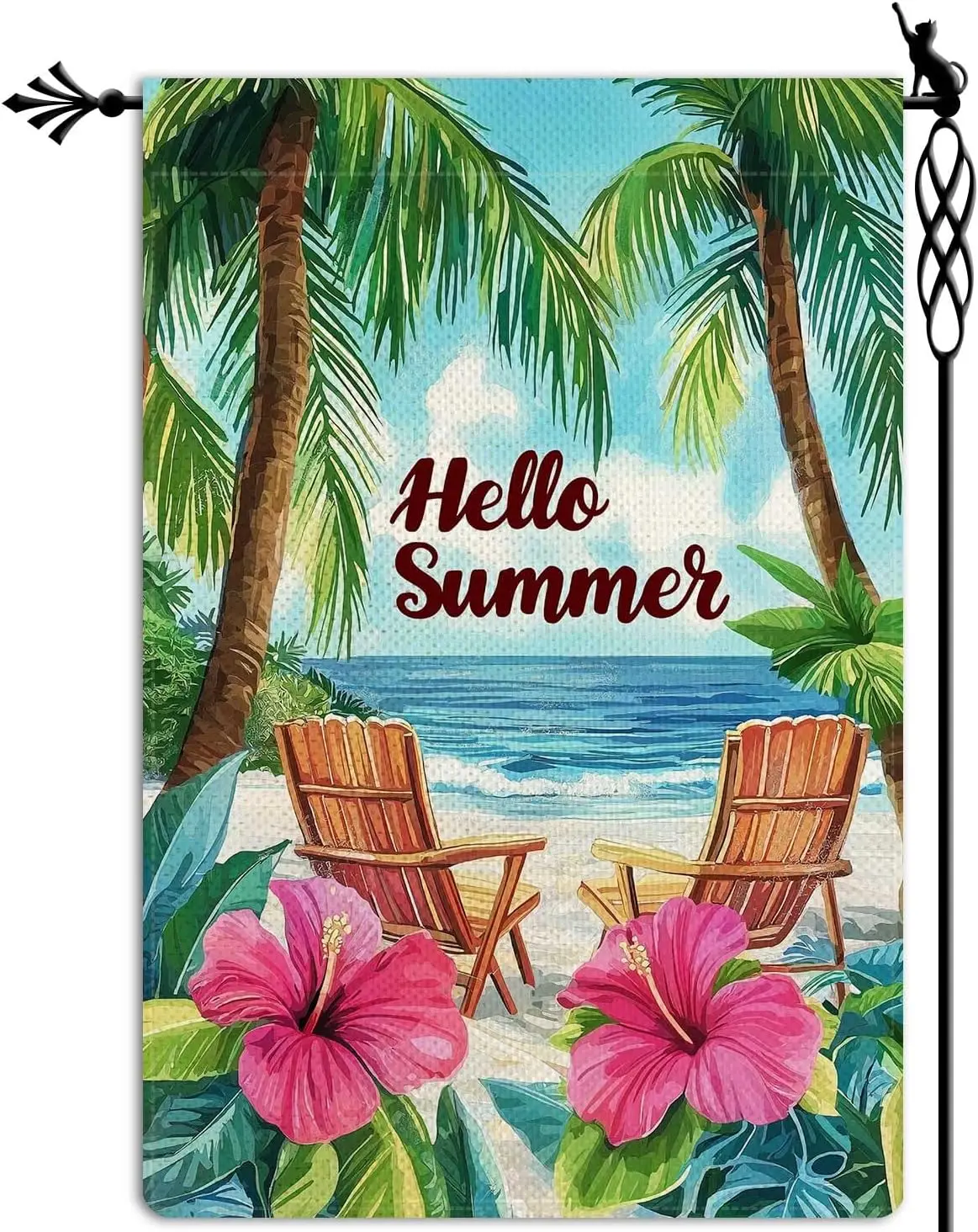 Hello Summer Beach Garden Flag Lounge Chair Garden Flag Vertical Double Sided Rustic Farmland Burlap Yard Lawn Outdoor Decor XAA