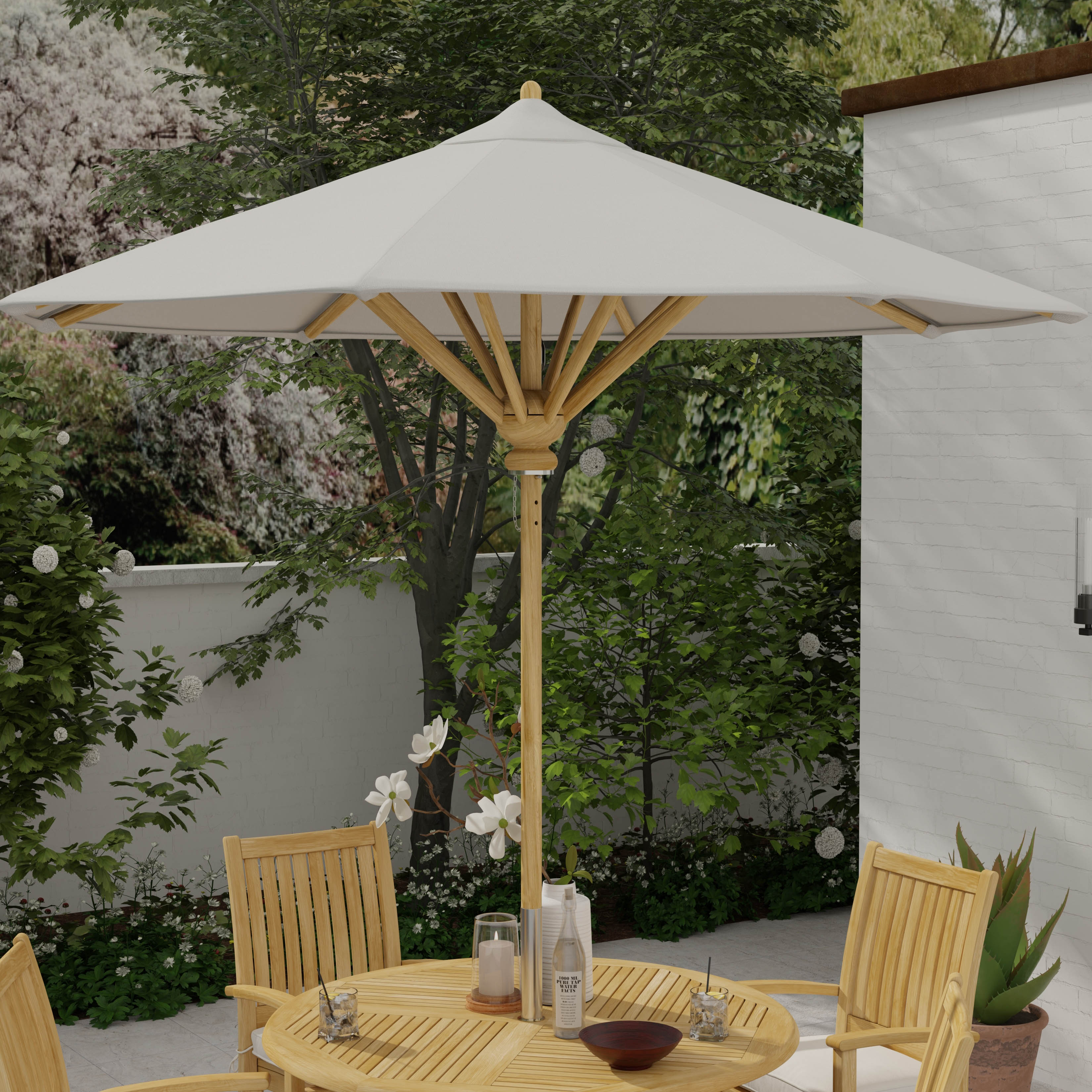 8 ft Round Teak Umbrella