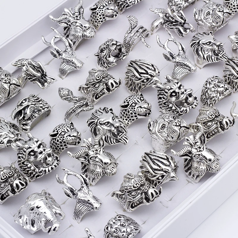 20pcs/lot Vintage Punk Animal Mix Style Metal Jewelry Rings For Men Women Size 8 to 11