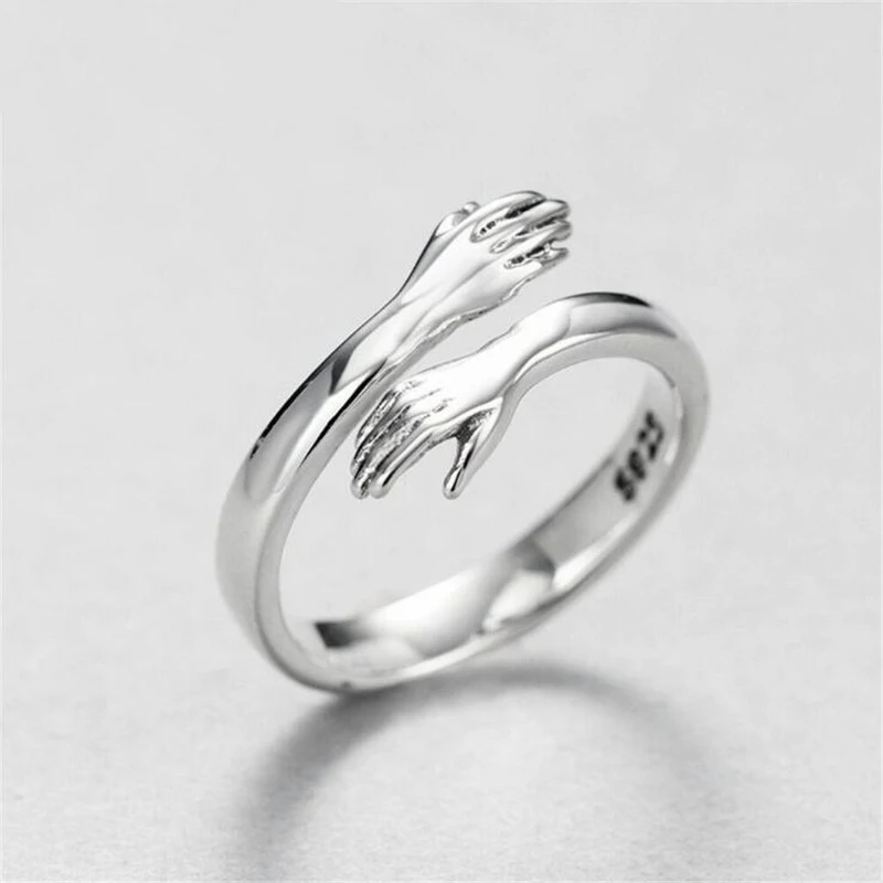 Romantic Love Hug Hand Rings Creative Love Forever Open Finger Rings Adjustable Exquisite Jewelry Ring For Women Party Gift