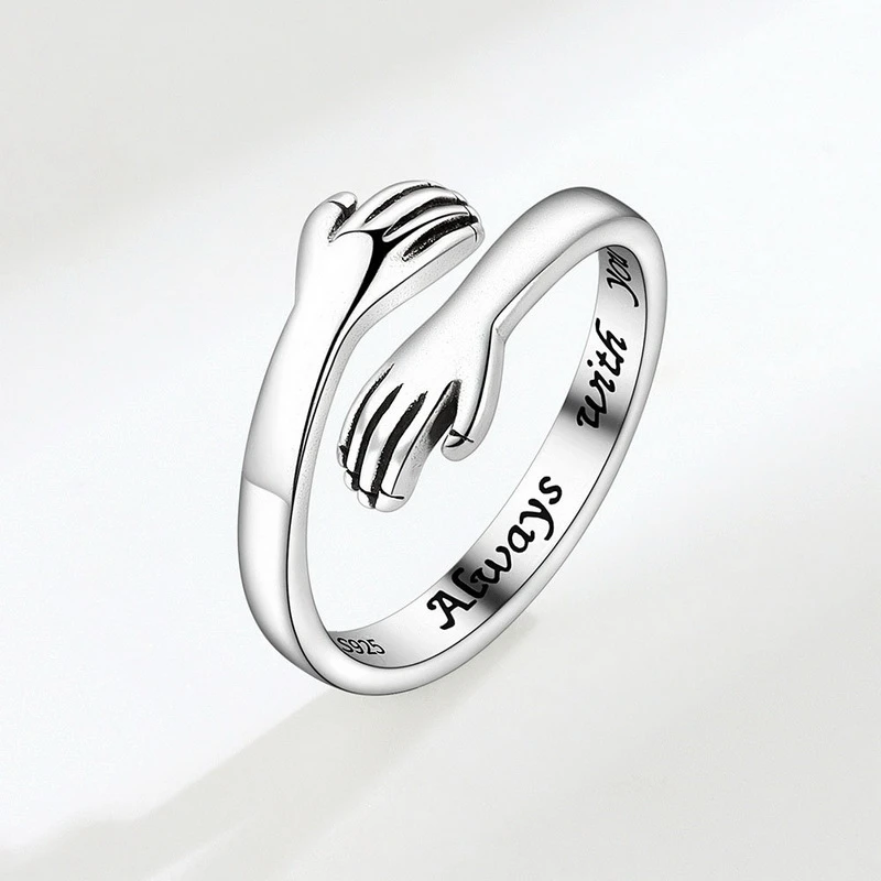 Vintage Silver Color Love Hugging Hands Couple Ring For Men And Women Always With You Forever Adjustable Open Cuff Rings Jewelry