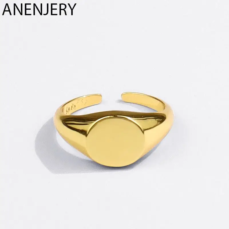 ANENJERY Silver Color Signet Ring for Women Men Round Gold Ring Geometric Party Jewelry Gifts
