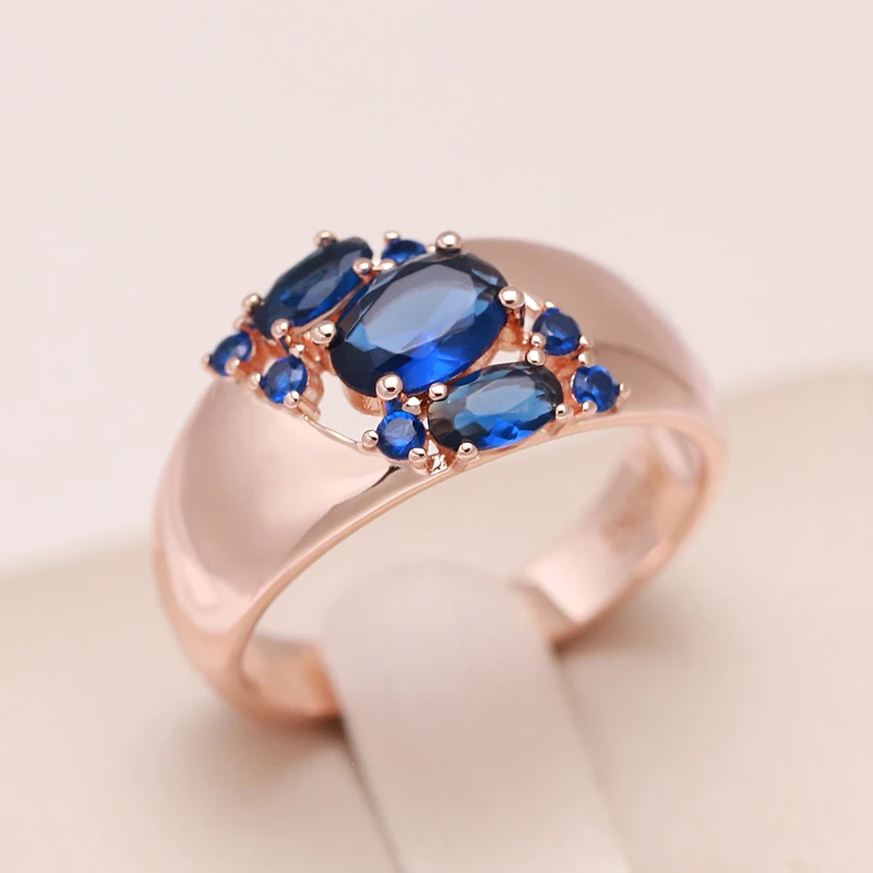 Kinel New Blue Natural Zircon Ring for Women 585 Rose Gold Wide Rings Vintage Ethnic Bride Wedding Jewelry Party Accessories  Read more