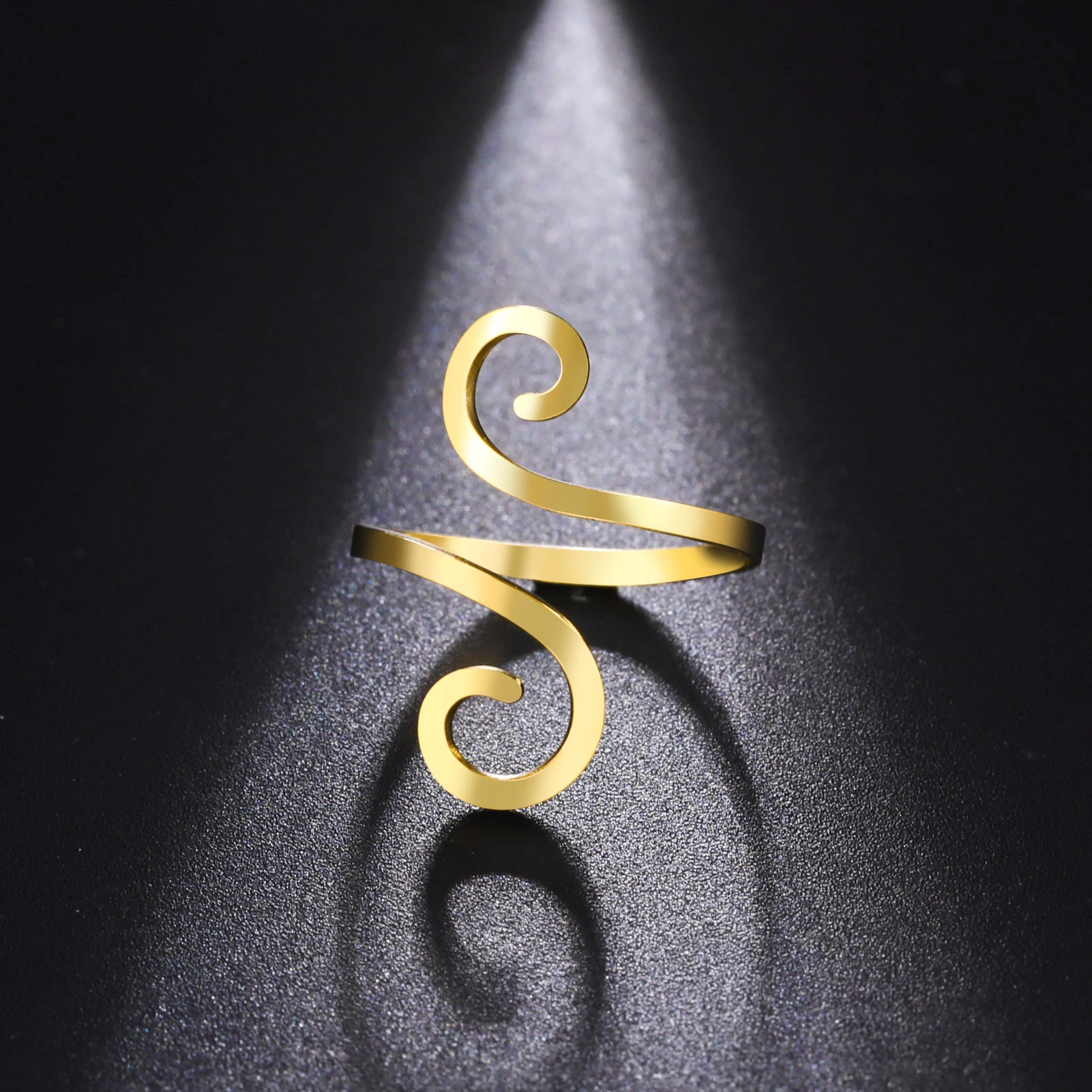 Skyrim Stainless Steel Large Spiral Ring Women Gold Color Adjustable Finger Rings 2025 Minimalist Jewelry Valentine Gift New In